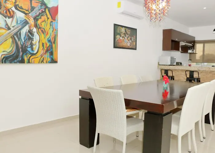 Disfruta de tus vacaciones en Playa del Carmen en el Apartamento Oasis Del Sol Playa del Carmen. Ideal para quienes buscan una experiencia auténtica, está situado a 15 minutos a pie de la Frida Kahlo Museum y a una distancia de 2 km de la Playa del Carmen. Los huéspedes pueden disfrutar de una estancia más relajante en el apartamento de 180 m² con las comodidades añadidas de una bañera de hidromasaje.